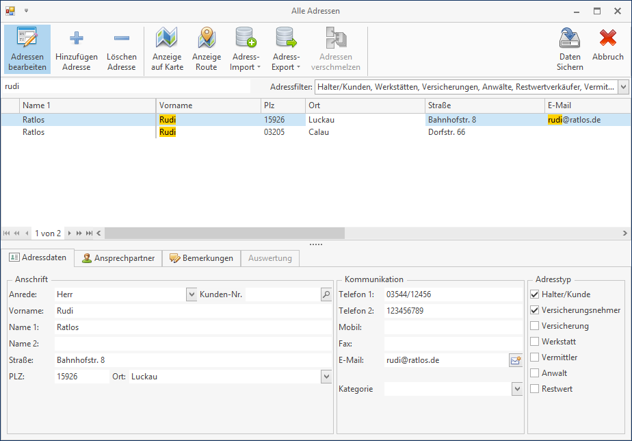 • Neue Aufträge anlegen, die Auftragsliste durchsuchen und Aufträge bearbeiten